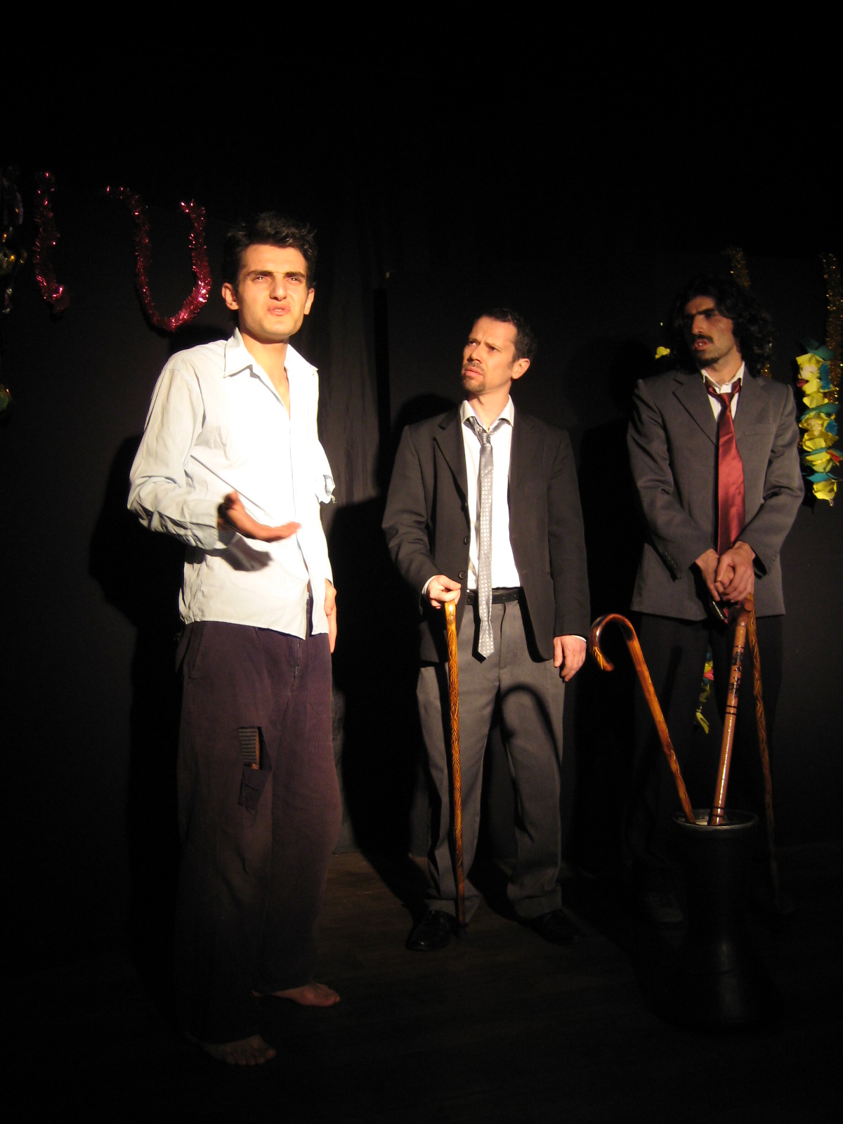 9 kişilik bir oyundur. Bir kişi iki farklı insanı oynuyor. İki perdeliktir.