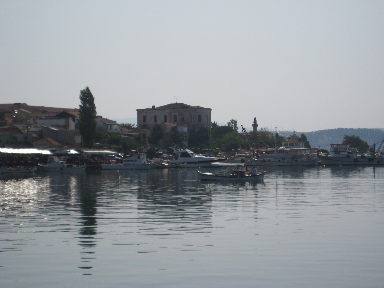 Rehberimizden ilgili bilgileri aldıktan sonra Cunda Adası’ na geçtik. Ada aslında ada değil; bir yolla anakaraya bağlanmış. O yolun üstünde şöyle bir tabela vardı: “Türkiye’ nin İlk Boğaz Köprüsü”. Cunda adasında “Taksiyarhis Kilisesi” ni gezdik. Kilise onarımda olduğundan içeri giremedik. Sahile indik, ünlü sakızlı dondurmalarından yedik. Taş Kahve’de kahvelerimizi içtik.