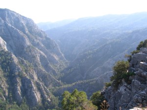 Turumuzun 4. gününde Kazdağları’ na yolculuk vardı. Sabah bizleri almaya jipler geldi. Bindiğim jip 83 model bayağı bir yıpranmış bir jipti ama yine de güzel bir araçtı. Altınoluk’ a yakın bir yerden Kazdağları’ na doğru çıktık. Tozlu topraklı yollardan ilerlerken, yüzümüze esen rüzgârın verdiği serinlikle etrafımızdaki çam ağaçlarına bakıyorduk. Burası dünyanın oksijen oranı bakımından ikinci yeriymiş. Milli kamptan içeri girdik ve Şahindere kanyonuna ulaştık. Burada öğle yemeğimizi yedik. 15 dakikalık bir yürüyüşten sonra buz gibi suların oluşturduğu göletlerinden birinde suya girdik. Suya girmemizle çıkmamız bir oluyordu ama suyun soğukluğu bize zindelik verdi. Buranın manzarası çok güzeldi. Buradaki suyun tadına baktım, tadı hoştu. Kanyonun etrafında jiplerle dolaşırken, bir çok yerde durup fotoğraf çekme molası verdik. Hakikaten burası muhteşem bir yerdir.