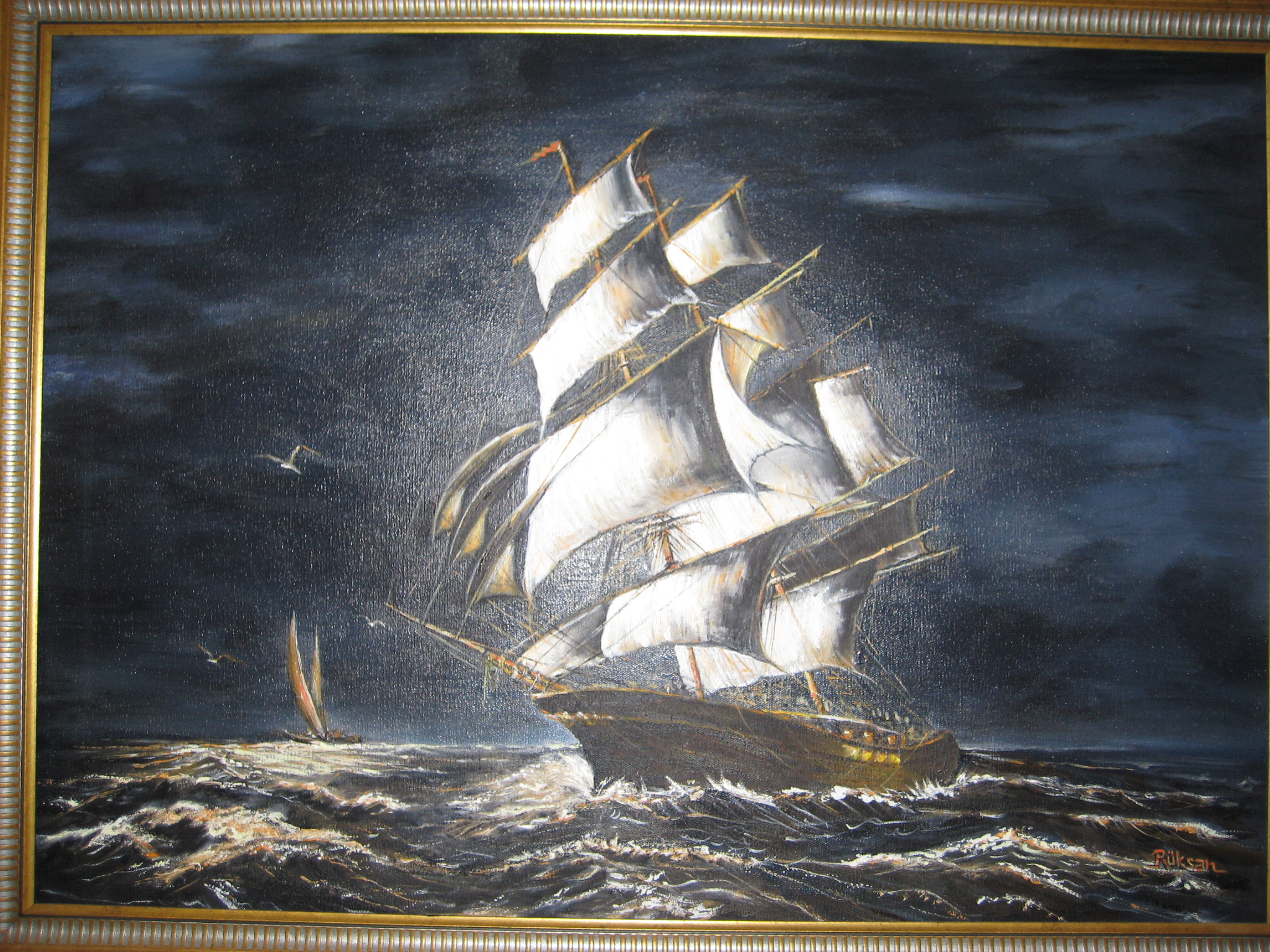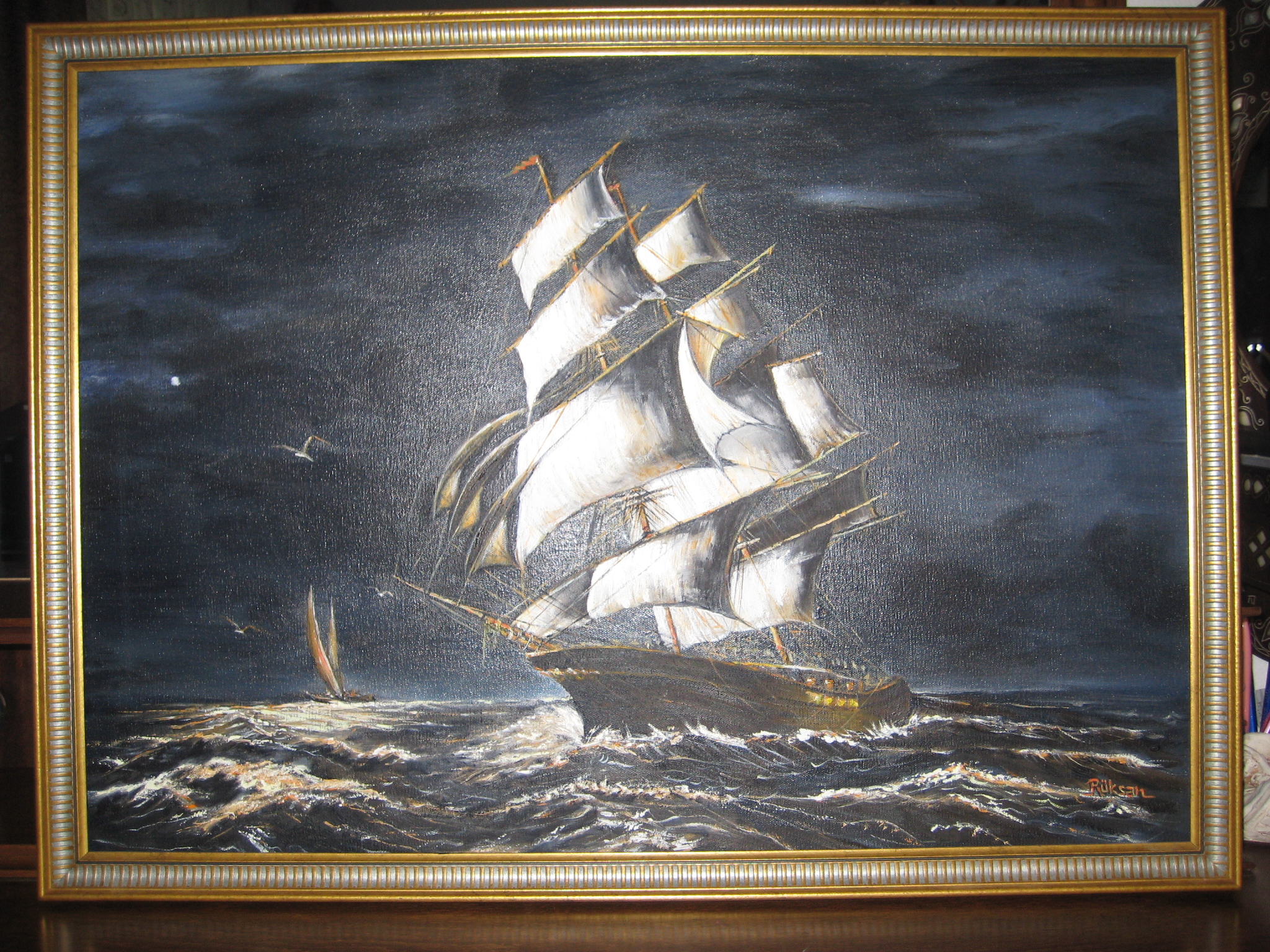 Evde kuzenim Ferman Keçilli, kız arkadaşı Canan ve kuzenimin arkadaşı Alper vardı. Alper bizim aile dostumuz olup; kuzenim Ferman ile bir ara beraber çalışmışlardı. Alper halamın yaptığı tabloları inceliyordu; sonunda şöyle dedi: “Rüksan abla! Hani nerde benim resmim” dedi. Halam da “istediğini seç” dedi. Alper bir yelkenlinin olduğu tabloyu seçti ve “Buna bir Ay yapsak, iyi olur” dedi. Halam da Ay’ı bir çırpıda ekledi. Bu çalışmayı da kaydetmek bana düştü.