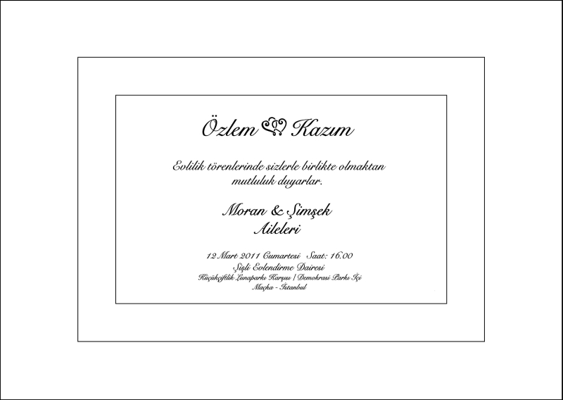 12 Mart 2011 Cumartesi saat 16:00’da “Şişli Evlendirme Merkezi”nde nihah için gün aldık.