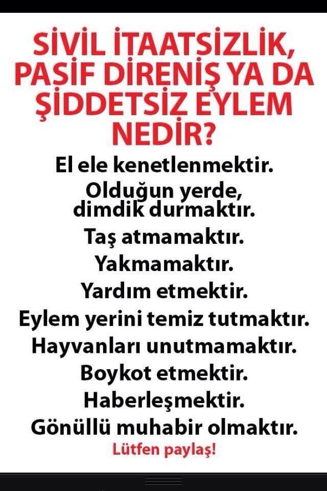 – Solcusu ,sağcısı, her türlü politik görüşe sahip insanların bir araya gelmesi, düzeyli , seviyeli bir direnişin gerçekleştrilmesi.
