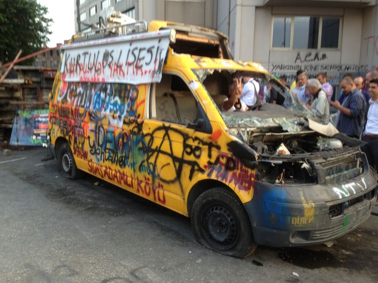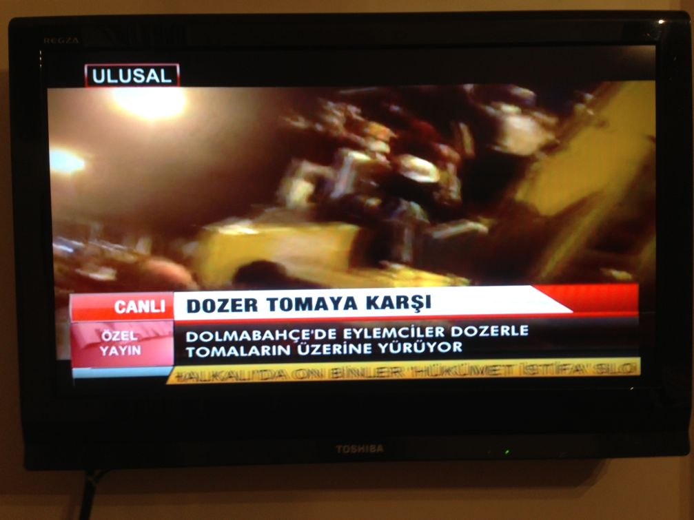 Cuma günkü olaylardan sonra polisin Taksim’de olduğu gibi Beşiktaş’da da ortada görünmememesi gerekiyordu. Ortam gergindi. Tomanın göstericilerin geçtiği yolun yanında olması şimşekleri üstüne çekti.Çoğunluk ne kadar taş atılmasın diye uğraştıysa da başarılı olamadı. O saatten sonra iki gün boyunca Beşiktaş semti direnişin en yoğun yaşandığı yerlerden biri oldu.